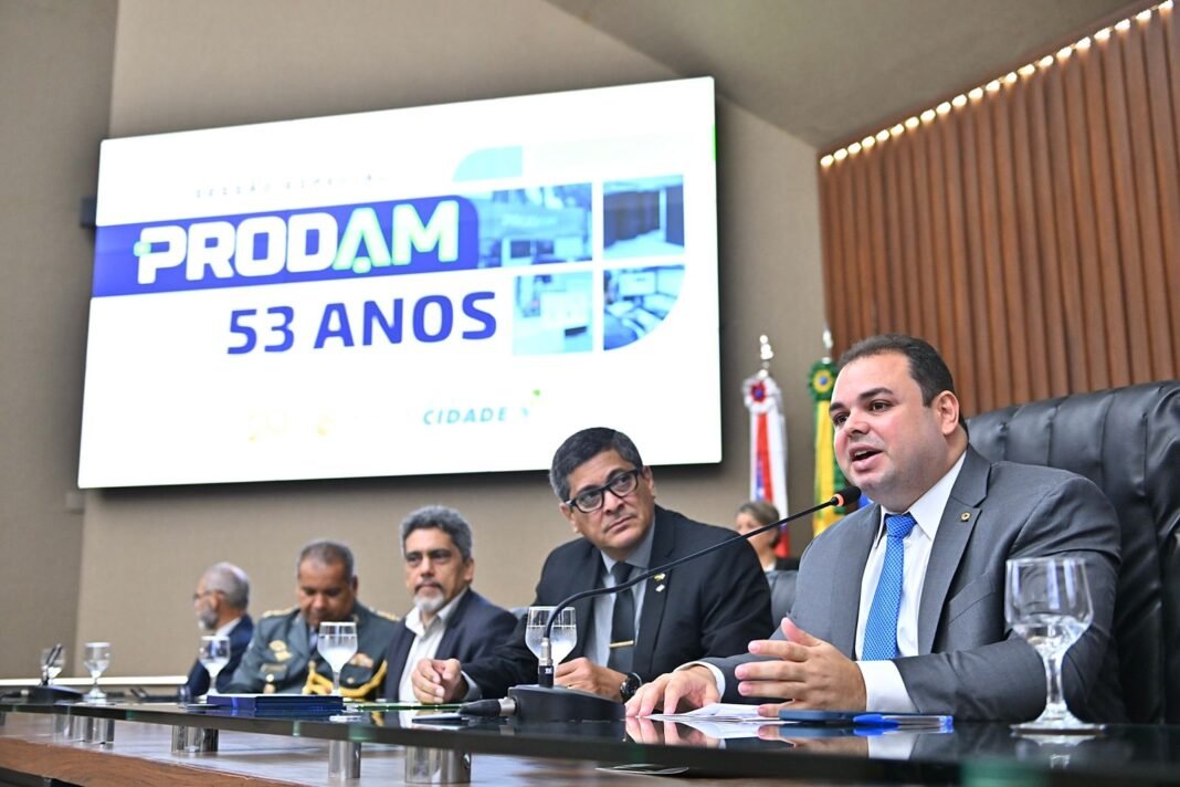 Empresa longeva e exitosa, a Processamento de Dados Amazonas S/A (Prodam) foi homenageada nessa quinta-feira, 03, com uma Sessão Especial na Assembleia Legislativa do Amazonas (Aleam). Proposta pelo deputado Roberto Cidade (UB), presidente do parlamento estadual, a homenagem foi um reconhecimento à contribuição que a Prodam tem prestado à gestão pública e à iniciativa privada nesses 53 anos da empresa.