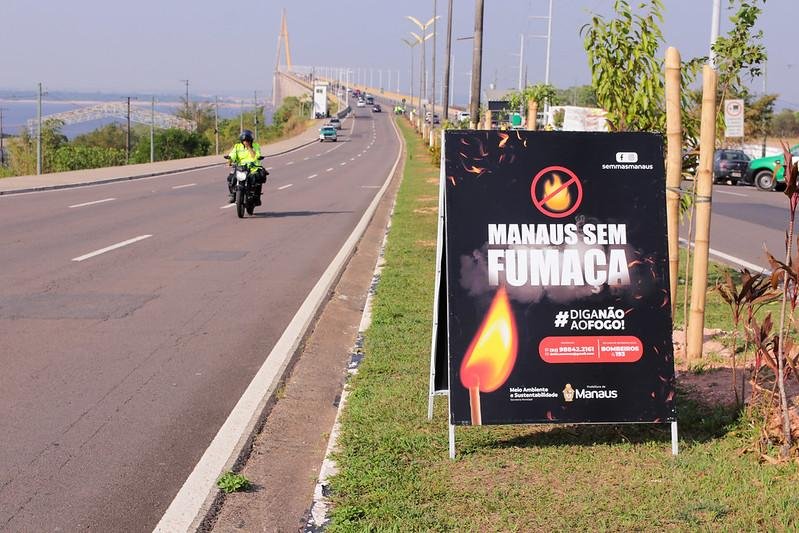 Mesmo com baixa incidência de queimadas na capital amazonense, a Prefeitura de Manaus, por meio da Secretaria Municipal de Meio Ambiente e Sustentabilidade (Semmas), segue fazendo o trabalho de conscientização sobre os riscos e danos causados pelas queimadas urbanas. Neste sábado, 30/9, a cabeceira da ponte Rio Negro, zona Oeste de Manaus, recebeu a quarta blitz “Manaus Sem Fumaça 2023″.