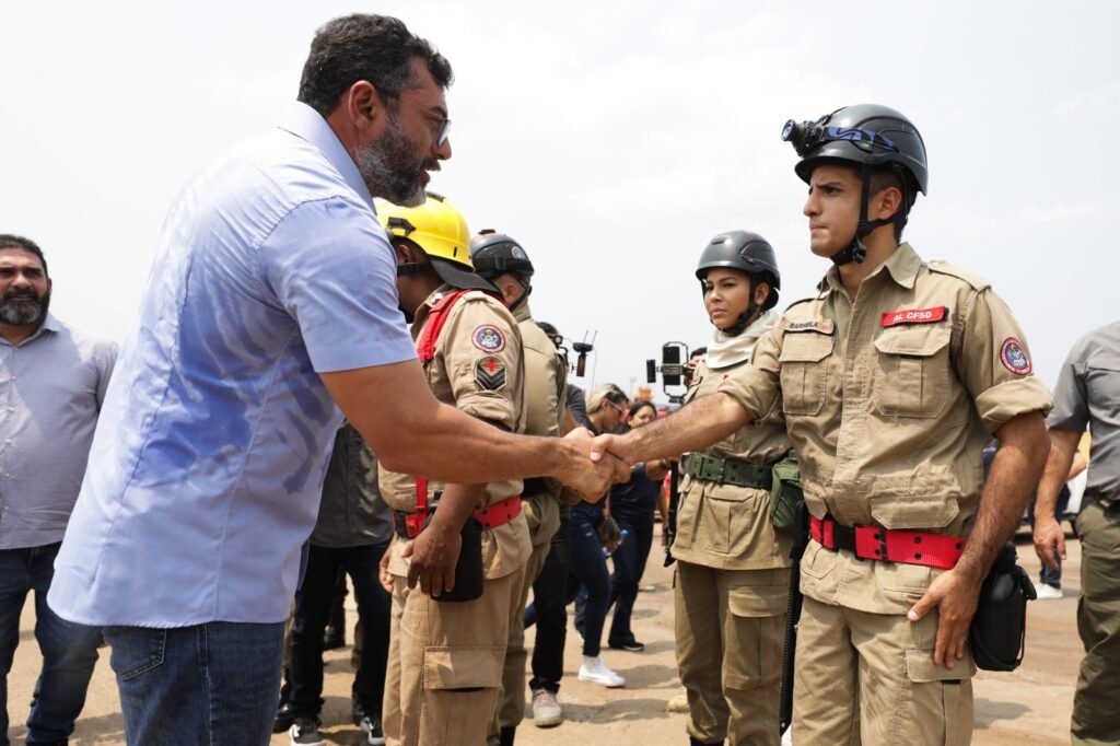 O governador Wilson Lima acompanhou, nesta segunda-feira (26/08), o envio de 200 homens do Corpo de Bombeiros do Amazonas (CBMAM), que serão integrados às equipes da Operação Aceiro 2024, no combate às queimadas e serão enviados para o sul do estado e Região Metropolitana de Manaus. Na ocasião, também foram entregues 12 viaturas como medida de reforço nas ações do Governo do Estado no combate aos incêndios.
