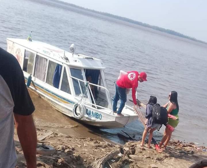 Em Parintins, ambulancha é usada para transportar bandeiras de candidato do prefeito